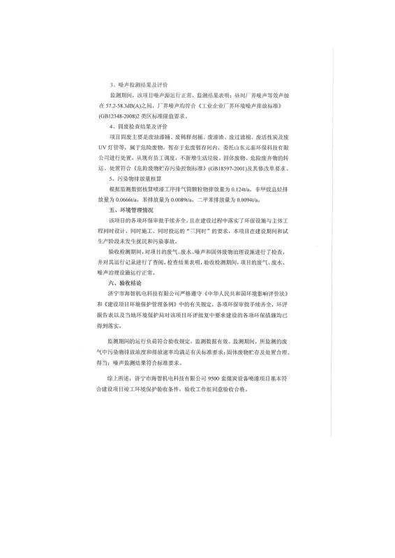 > 9500套煤炭設備噴漆項目竣工環(huán)境保護驗收監(jiān)測報告