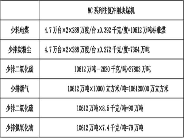 智能往復(fù)鋸割塊煤機(jī)環(huán)保數(shù)據(jù)表: